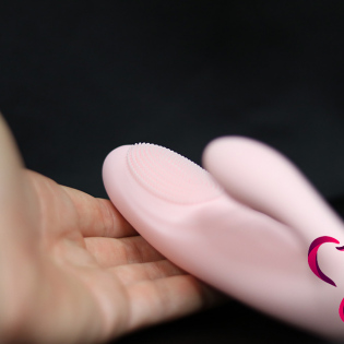 Při pohledu na tento vibrátor moje manželka uznale pokývala hlavou. Ano, tohle vypadá zajímavě. Navíc je se zahříváním, vlastností, kterou měl jiný náš vibrátor, jenž se nedávno rozbil. Oproti tomu ale má The Queen Rabbit ještě výstupek pro dráždění poštěváčku a na obou koncích je vybaven jemným silikonovým kartáčkem, na který se žena zvláště těšila.