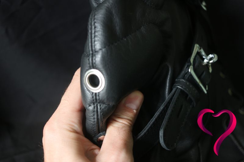 V úrovni úst je malý otvor určený pro dýchání, který se dá využít pro limitaci partnerova dechu. Přes masku vedou celkem 3 popruhy, jeden přes uši pod bradu, druhý přes čelo na zátylek a třetí kolem krku, jehož součástí jsou samozřejmě i poutka vhodná k připnutí např. vodítka.