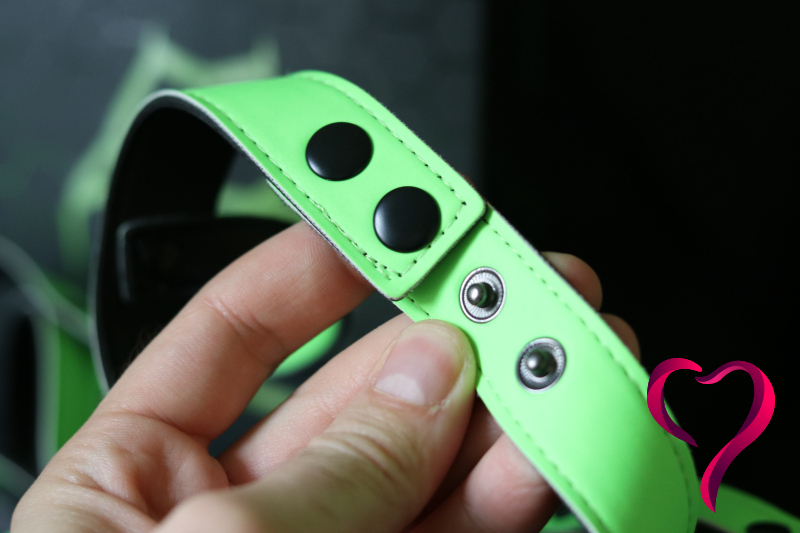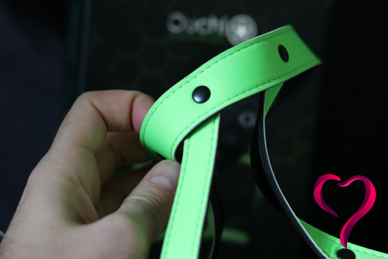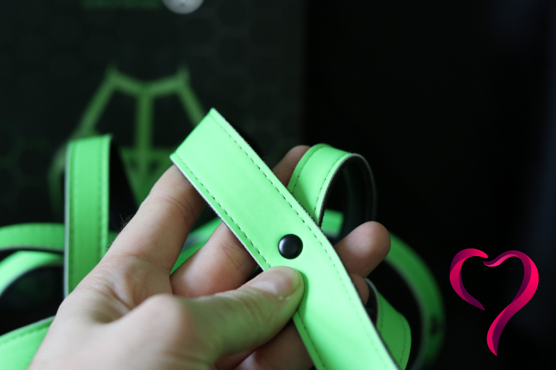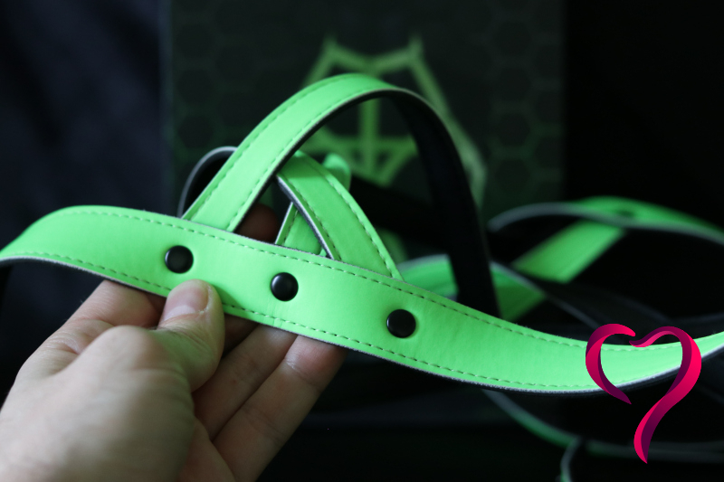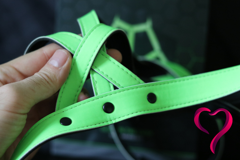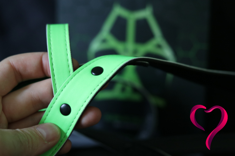 A světe div se — tenhle harness nám prošel rovnou na první dobrou. Oba jsme měli kousky z té samé Glow in the Darkřady, takže jsme k sobě krásně ladili. Kontrola dresscodu nás pustila s úsměvem, protože přesně tohle chtěli vidět: barvu, trochu drzosti a hlavně něco, co pod UV světly fakt ožije.