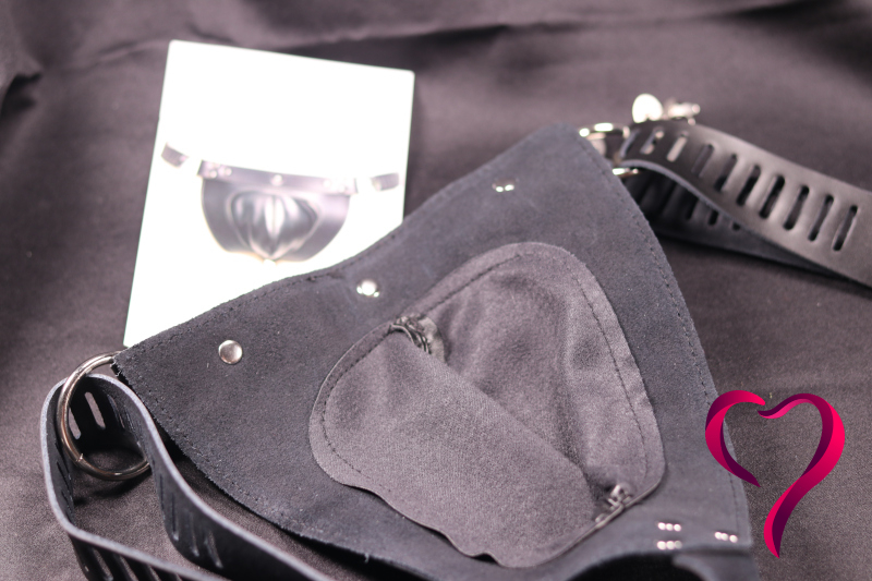 Tady přichází část, která mě překvapila nejvíc. Vnitřní koženkový vak totiž nefunguje jen jako krytka přes penis. V některých případech se do něj vejdou i samotná varlata, což není u podobných pásů úplně běžné. Většina „pásů cudnosti“ v této kategorii řeší hlavně penis a zbytek nechává venku nebo mimo.