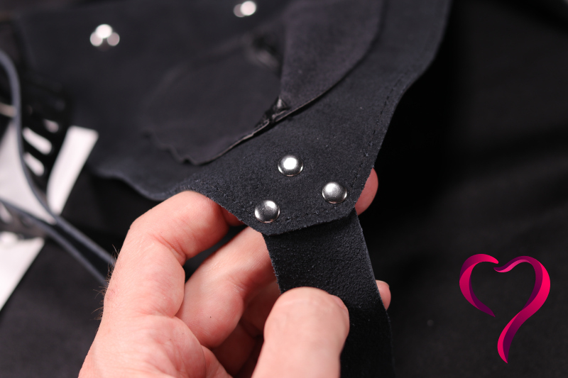 A tady se mi v hlavě rozsvítilo. Nejzajímavější varianta použití je podle mě kombinace s klasickým pásem cudnosti. Tedy že máte reálnou klec a přes ni ještě tuhle koženkovou „krytku“, která všechno zakryje a zjemní vizuálně do roleplay stylu.