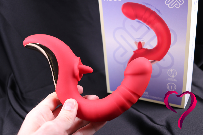 Skutečně má oproti většině dvojitých vibrátorů specifický tvar – je zahnutý více jak do pravého úhlu. Tato skutečnost je podle mého názoru ta nejlepší vlastnost celého výrobku, jak bude uvedeno níže.