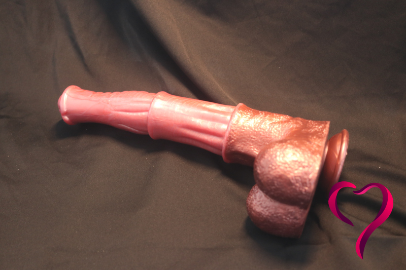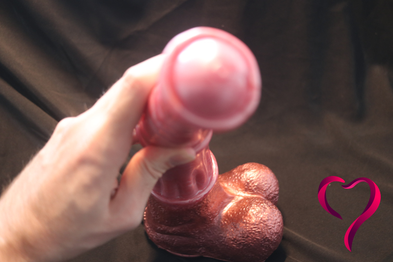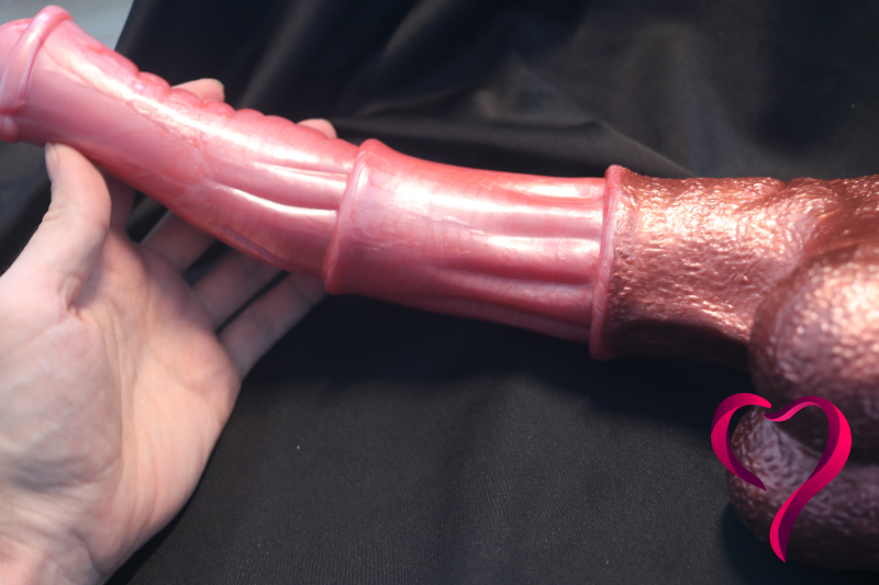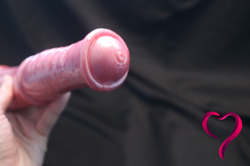 Na první pohled mě velmi zaujala barva, která vypadala bronzově metalická, ale „tělo“ dilda pak bylo blyštivě růžovoučké. Nejprve jsem potěšila své vnitřní dítě mohutným zatočením dlouhým falusem ve vzduchu – je opravdu měkoučký a jemňoučký. Pak jsem se pustila do detailnějšího přezkoumání.