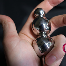 Na druhé strany je zakončená v tomto případě trojicí ocelových kuliček, které se postupně zvětšují v průměru. To postupné zvětšení je důležité, protože je velmi intenzivní při zavádění. A upřímně? To je vlastně vše – to je celá hračka, ta hlavní zábava je v jejím použití.