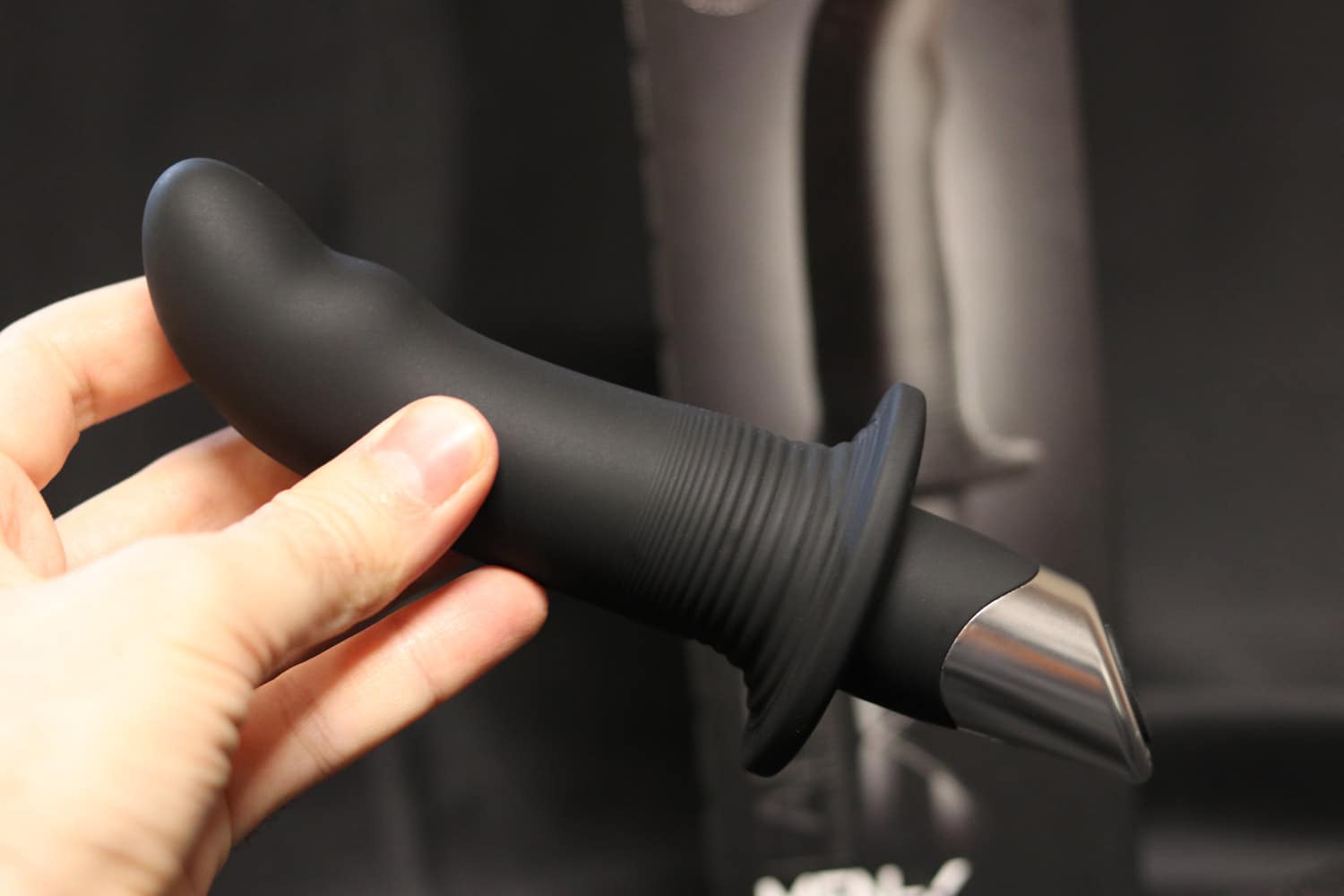 Od spouštěcího mechanismu je tělo vibrátoru oddělené malou zášti-tou, což mu dodává nejen na eleganci, ale i na funkčnosti v podobě stimulace okolí análu. Plastové držátko je stříbrné s černým tlačítkem, přičemž na rukojeti ještě prosvítají dva kovové kulaté body – magnetické konektory nabíječky. Tak už šup s hračkou do zadku.