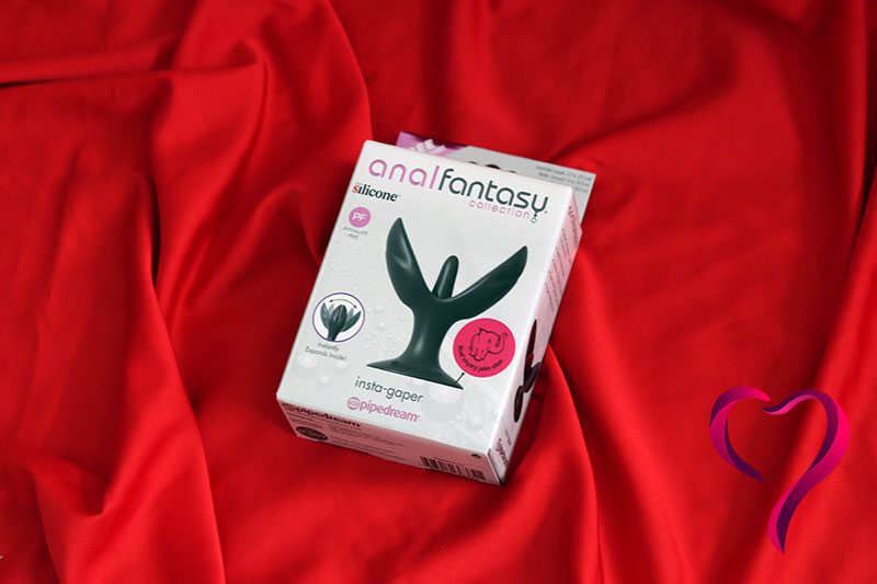 Gaper od Anal Fantasy (podznačka obrovského Pipedreamu) je čistě silikonový jednoduchý kolík s přísavkou. Zajímavý je na něm jeho tvar. Patka s přísavkou je tradiční, ale nad ní jsou dva rozevřené „jazyky“ také z čistého silikonu.