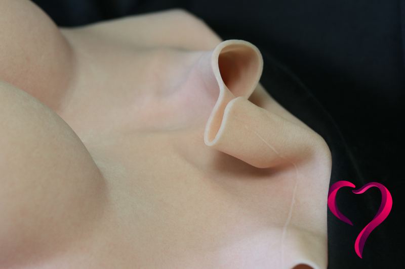 Krk zakrytý silikonem schová ohryzek. To je drobný detail, ale pro crossdressing zásadní. Nejde o „muže, který má prsa“, ale o postavu, jejíž horní část těla působí celistvě žensky.