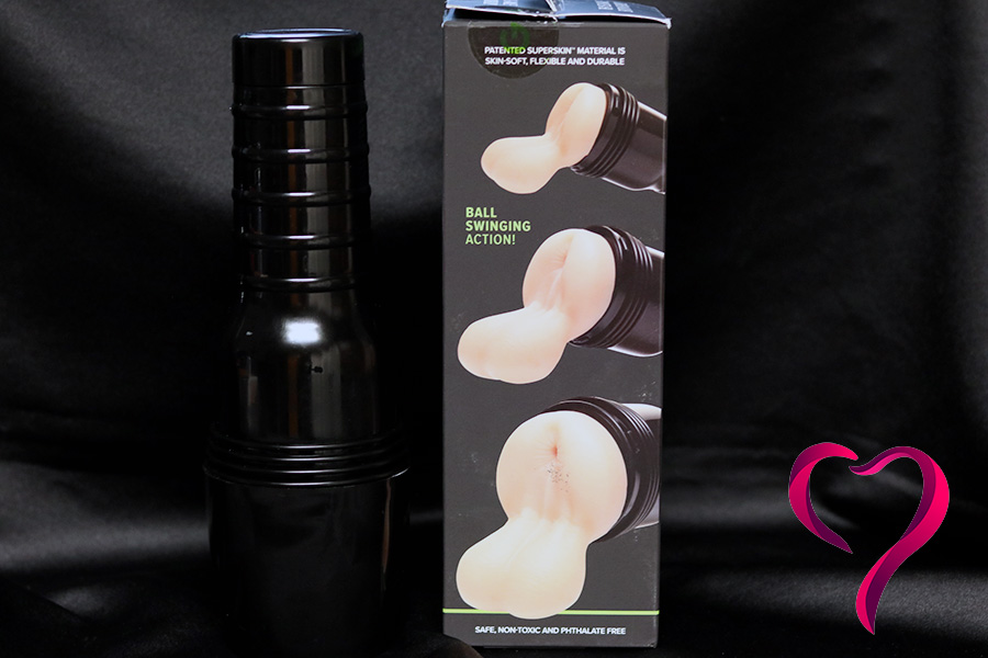 Zde atypicky kvůli varlatům je odnímatelné víčko citelně delší, než u klasických Fleshlightek. Tohle řešení mě zajímalo, už když jsem viděl hračku na fotkách na sexshopu Slona, protože běžná honička od této značky znám, tak jsem si říkal, kam se sakra mohou vejít.