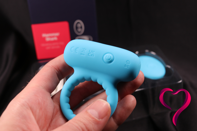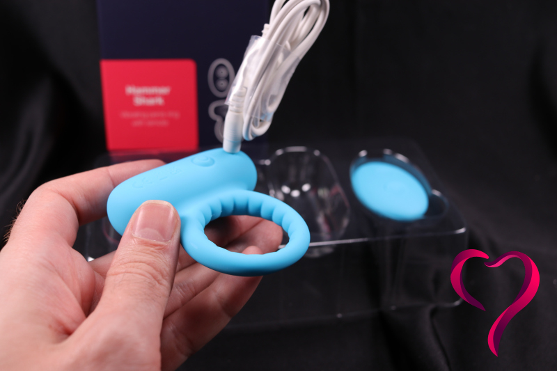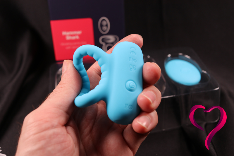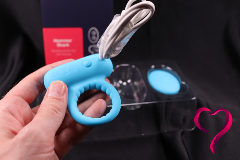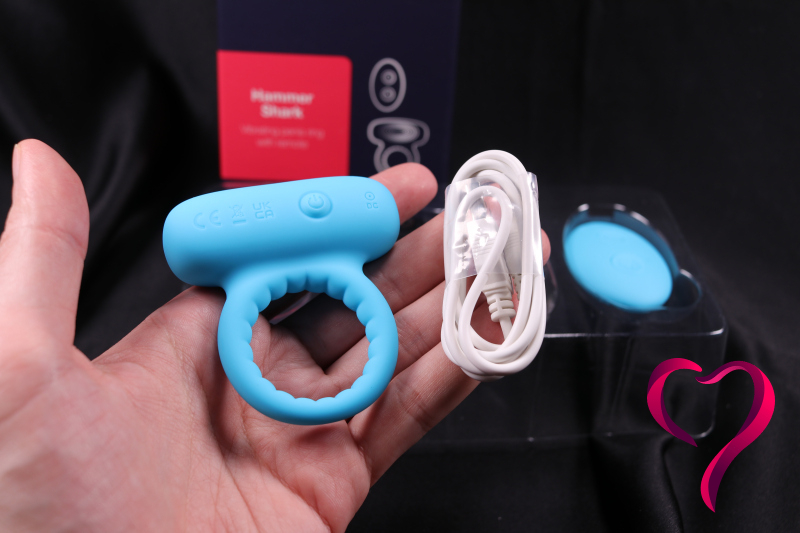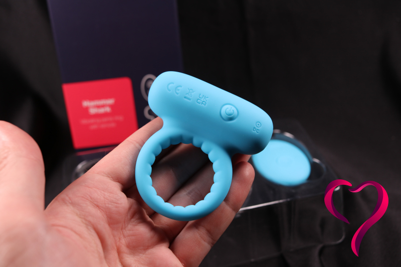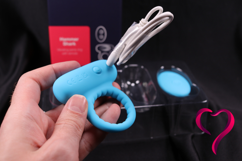Zatímco většina kroužků s vibrátorem vypadá jako „zajíček“ nebo prostě kroužek s malým motorkem, Hammer Shark sází na robustní konstrukci, která připomíná hlavu žraloka. Při nasazování kroužku je klíčové, aby vibrační část směřovala dolů.