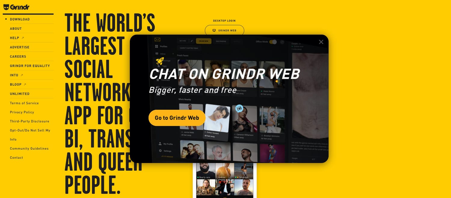 Aplikace Grindr je rozšířena v téměř dvou stech zemích světa. Aplikaci užívá přibližně 27 milionů registrovaných uživatelů. Grindr je unikátní průkopnickým systémem nabízení profilů na základě lokalizace v okolí. Stačí se zaregistrovat a během chvilky dostane uživatel nabídku profilů z okolí, ze kterých může vybírat.