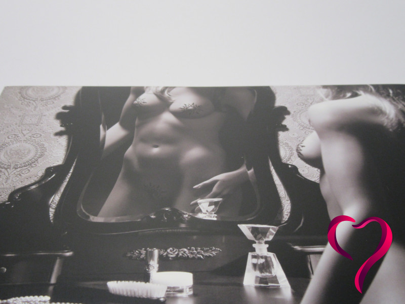 Na obalu jsou krásně vidět varianty na prsa, ale klínová ozdoba tam zobrazená není – takže jsem zpočátku úplně netušila, k čemu přesně je. Jakmile ale obal rozložíte jako knížku, objeví se uvnitř nádherné budoárové fotografie z nošení na skutečně krásných ženách.