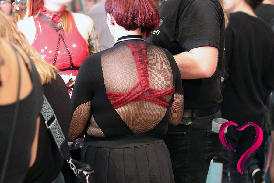 Milejší na pohled byl Fred Kyrel se svým Fashion shibari = vázání lesklými lany a perličkami = vizuálně krásné a sexy, však si jeho dílo minule vysloužilo titulní fotku u reportu z Berlína.