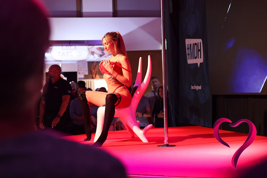 Ale díky mnohým dívkám to vlastně nevadilo, protože jste se nenudili, prostě jste korzovali mezi jednotlivými pódii (tady to ani nebyly stánky, ale obří plochy typicky s taneční tyčí, gauči,…) a vystačili byste si. Svůj bezpečný a klidný prostor našli i milovníci fetišů a BDSM v samostatném sálu, který letos byl silně obsazený stánky a vystoupeními, ale v 2019 mi přišel více naplněný lidmi.