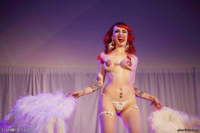 Vraťme se však k programu samotnému. Do bílého navlečená burleska Miss Cool Cat dojímala publikum odhazováním jednotlivých částí kostýmu, ale nahá nezůstala.