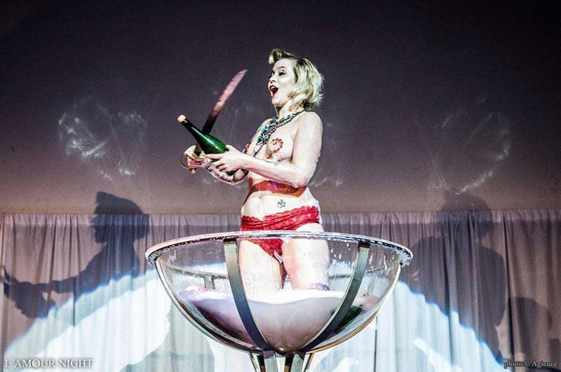 Za její vrchol byl považován výstup do číše nadměrné velikosti, která byla naplněna sektem. Koupel vyvolala dlouhotrvající potlesk. Dodatečně podané láhvi šampáňa urazila hrdlo nožem, čímž zahájila oficiálně druhý ročník L’Amour Night.